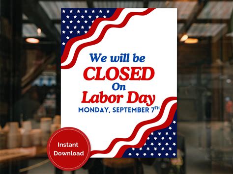 PRINTABLE Closed Labor Day SIGN, Closed On Labor Day, Business, Retail, Restaurant, Office We Are Closed On Labor Day, Holiday Hours Sign