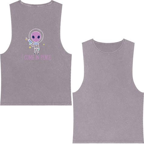 Alien I Come In Peace Halloween Costume Double Sided Mineral Wash Tank Tops