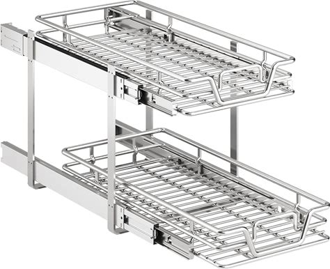 QUYUWU 2-Tier Kitchen Cabinet,Pull Out Cabinet Organizer,Shelf And Drawer Organizer Slide Out Pantry Storaqe Basket In Multiple Sizes (12" W X21 D)