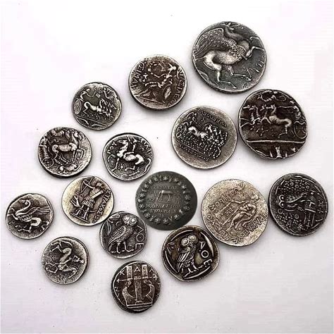 16Pcs Ancient Greek Alien Relief Horse Antique Copper Coin Old Silver Medal Commemorative Coin Copy