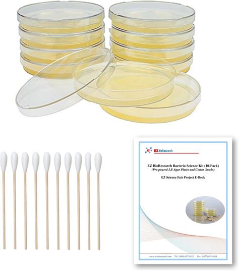 EZ Bioresearch Bacteria Science Kit (IV): Top Science Fair Project Kit. Prepoured LB-Agar Plates And Cotton Swabs. Exclusive Free Science Fair Project