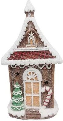16.54"H Gingerbread Village House - LED Lights, 8 Carols Music, Battery - Hand-Painted Resin